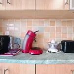 - ❓Is there a kitchen available at this accommodation for guest use?Yes, this accommodation is furnished with a kitchen and offers a microwave oven, a refrigerator, and kitchenware as well.
